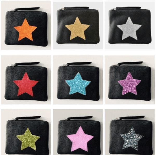 A brilliant, beautifully simple and practical leather purse, a perfect size for storing cards, coins and receipts. Made from really soft full grain leather and printed with glittery bee.