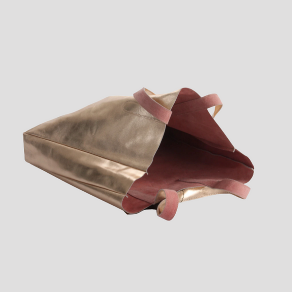 The perfect metallic tote bag. HYDESTYLE unique and handmade metallic leather tote available in Rose, Pewter, Silver, Copper, Beige and Black.